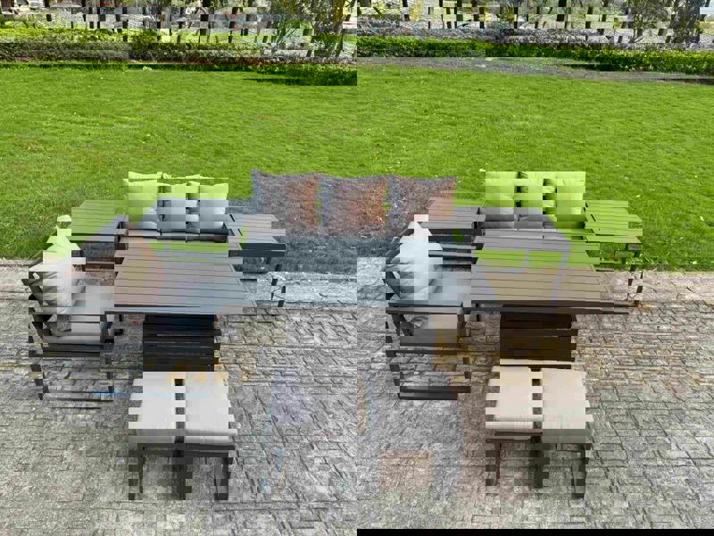 Upgrade your patio, garden or balcony with the Fimous Aluminium Outdoor Furniture Set, a versatile sofa dining set designed for relaxed everyday use and effortless entertaining. With an adjustable rising dining table, you can switch between a low coffee-table setting and a dining-height arrangement to suit the moment.