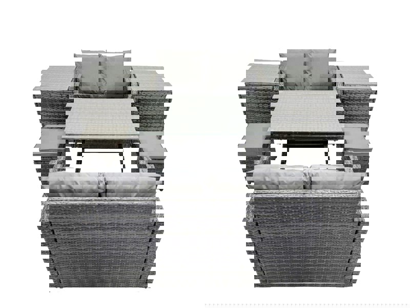 Create a refined outdoor living space with this 6 seater garden rattan furniture set, designed for use both indoors and outdoors. Blending country chic with modern minimalism, it brings a considered look to patios and balconies while offering a practical layout for dining and relaxed seating.