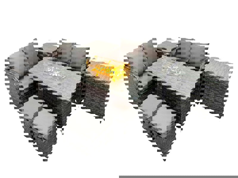 Create a refined space for dining and relaxing with this rattan gas fire pit dining table set, designed for both indoor and outdoor use. With high quality PE rattan and a durable galvanised steel construction, it offers a sturdy, long-lasting setup for a patio, balcony, or indoor entertaining area.