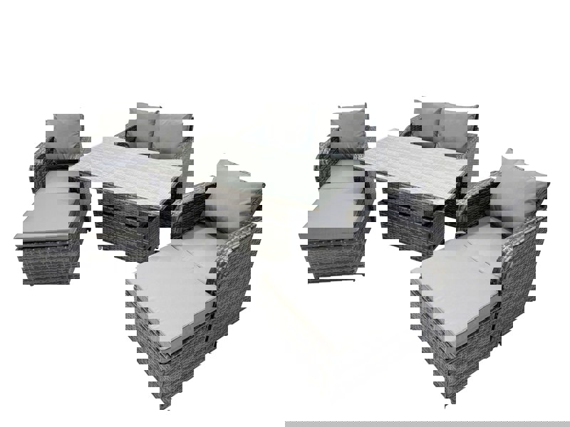 This modern rattan garden furniture set is designed for flexible outdoor living, making it easy to create a comfortable space for relaxing or dining in your garden, patio or conservatory. With a rising dining table and reclining chairs, it adapts to different occasions while keeping your seating arrangement coordinated.
