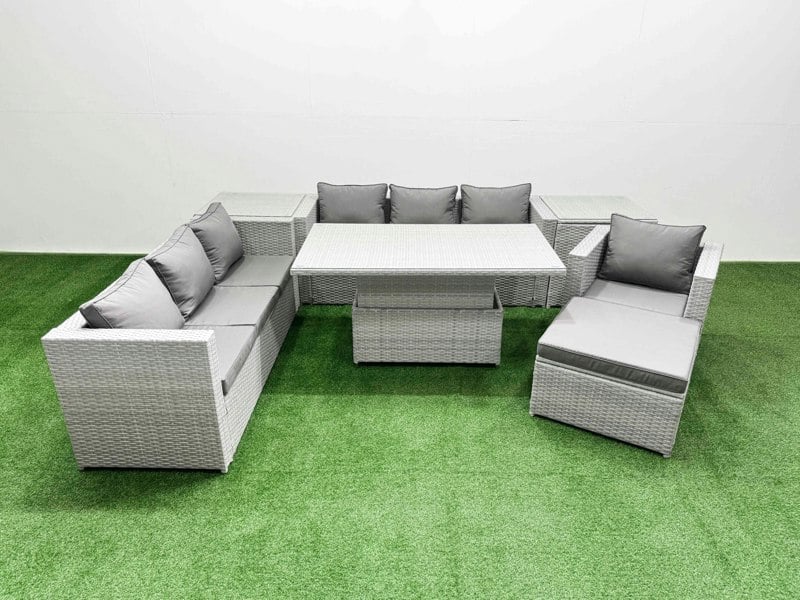 Bring flexible outdoor living to your patio or garden with this deluxe rattan rising sofa dining set. Designed for relaxed coffee moments and comfortable dining, it pairs a rising table with generous seating to suit everything from casual catch-ups to longer evenings outdoors.
