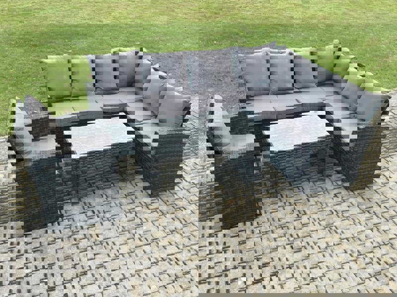 Designed for relaxed outdoor living, this classic corner sofa set seats up to 7 people and creates an inviting space for everyday lounging and entertaining. Finished in premium dark grey mixed rattan with matching dark grey fabric, it brings a cohesive look to patios and gardens.