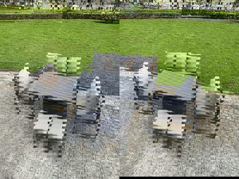 The Fimous 6-piece aluminium garden furniture set brings flexible outdoor living to your patio or garden, combining a 3 seater sofa, two chairs, two small footstools and an adjustable rising dining table. Designed for both relaxed lounging and casual dining, the table transitions smoothly between coffee-table height and dining height to suit the moment.