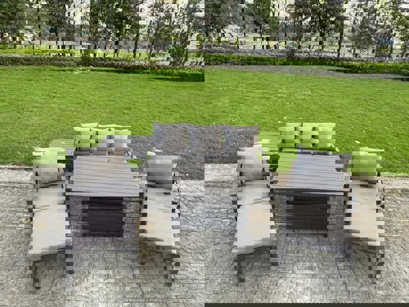 The Fimous 7-Piece Aluminium Garden Furniture Set brings flexible outdoor living to your patio or garden, combining a sofa dining arrangement with an adjustable rising table. Designed for everyday lounging and easy entertaining, the table transitions smoothly between coffee and dining height to suit the moment.