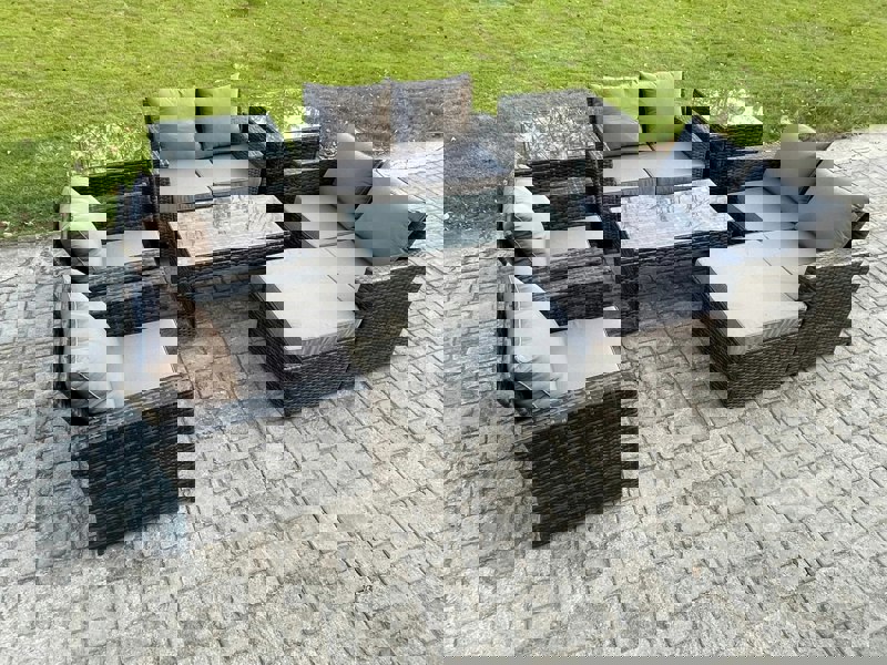 Create a considered seating area outdoors with this 7-seater garden sofa set, designed to bring people together across patios, gardens, backyards, pool areas and other indoor or outdoor spaces. A tempered glass coffee table offers a practical surface for food and drinks, while the high-back, reclining design is shaped for relaxed lounging.