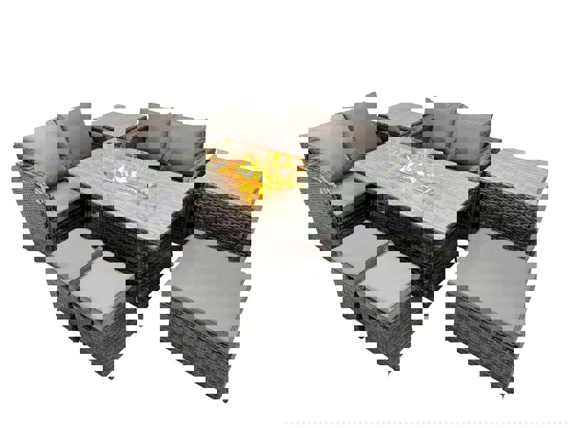 Create a refined space for relaxed dining and evening gatherings with this rattan gas fire pit dining table set. Designed for both indoor and outdoor use, it brings a considered mix of country chic and modern minimalism to patios, balconies and interior settings. Crafted from high quality PE rattan with a durable galvanised steel construction, the set is made for everyday comfort and lasting sturdiness.