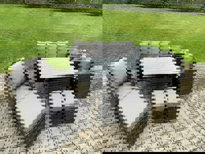 Create a refined outdoor seating and dining area with this deluxe 8 seater reclining rattan sofa set. Designed for patios and gardens, it brings together a coordinated sofa, reclining chairs, dining table and footstools for relaxed everyday lounging and easy outdoor entertaining.