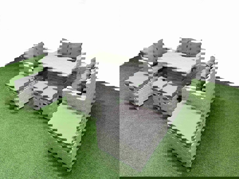 This 10-seater deluxe garden furniture set is designed to bring a refined, coordinated look to your courtyard, deck, backyard, porch or poolside. Easy to arrange into different configurations, it offers flexible seating for relaxed outdoor dining and everyday lounging.