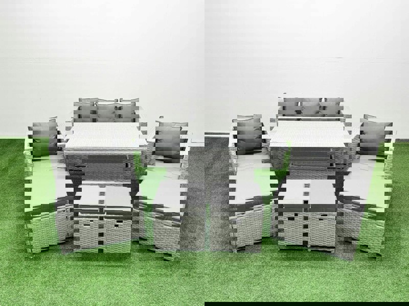 Bring relaxed versatility to your patio or garden with this deluxe rattan rising sofa dining set. Designed for everyday outdoor living, it combines a comfortable lounge-style layout with a rising table that can be used for coffee or dining.