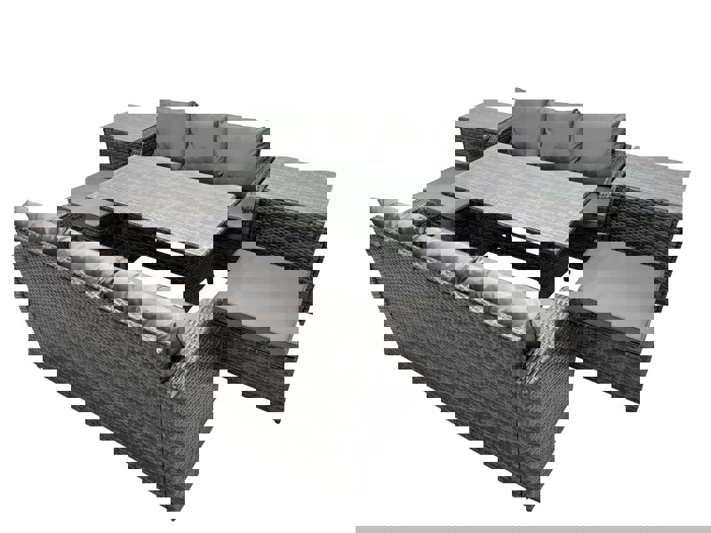 Designed for relaxed entertaining, the Fimous 8 Seat Outdoor Wicker PE Rattan Garden Furniture Set brings together sofa seating and a dining table for flexible use indoors or outdoors. With its blend of country chic and modern minimalism, it adds a refined finishing touch to a patio, balcony, or indoor space.