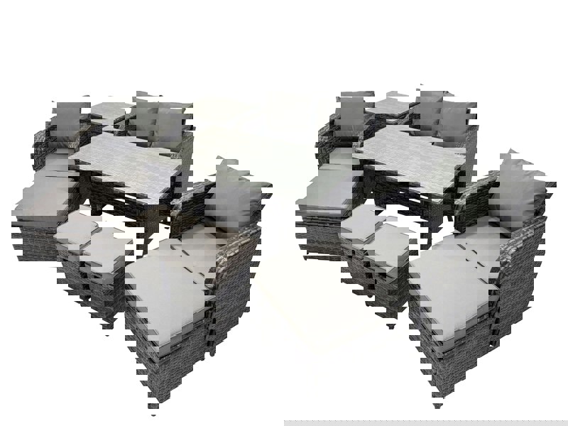 Designed for relaxed dining and lounging, the Fimous 8 Seat Outdoor Wicker PE Rattan Garden Furniture Set brings a refined look to patios, balconies and indoor spaces. With a blend of country chic and modern minimalism, it adds a considered finish to your setting while offering a practical layout for everyday use.