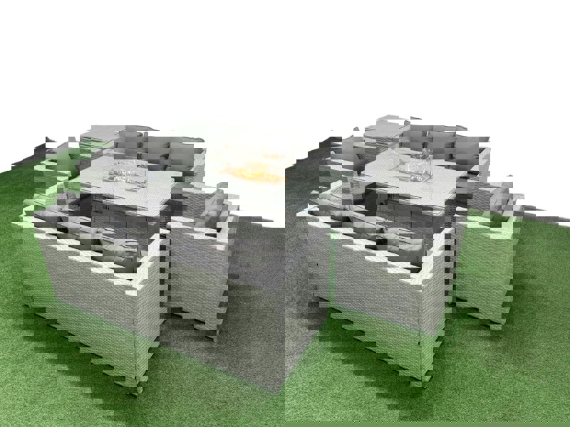 Create a refined outdoor setting for relaxed dining and evening gatherings with the Fimous 8 Seat PE Rattan Lounge Sofa Set, complete with a fire pit dining table. Designed for patios and gardens, this coordinated set brings together generous seating and a central table, ideal for hosting friends and family in comfort.