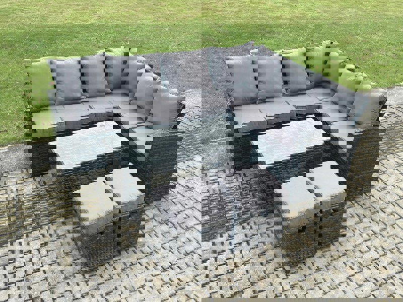 Designed for relaxed outdoor living, this classic corner sofa set offers generous seating for up to 8 people. Finished in dark grey mixed rattan with matching dark grey fabric, it brings a cohesive look to patios and garden spaces, with soft back cushions and supportive seat cushions for comfortable lounging.