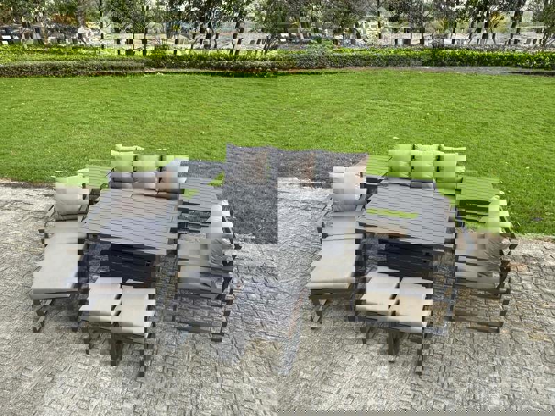 Bring flexible outdoor hosting to your patio or garden with this deluxe aluminium adjustable rising sofa dining set. Designed to transition easily between relaxed lounging and casual dining, the adjustable table height helps you tailor the layout to the moment, whether you are serving drinks or sitting down to eat.