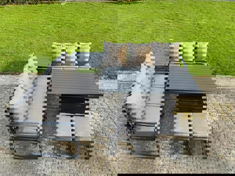 Crafted from high-quality alloy aluminium with a dark grey powder-coated finish, the frame is built for lasting durability and rust resistance. Thick seat cushions and soft pillow back cushions complete the experience, while removable covers support straightforward day-to-day upkeep.