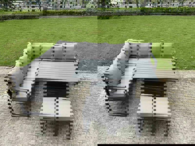 The Fimous 7 Piece Garden Furniture Set brings flexible outdoor seating and dining to your patio or garden. Designed around an adjustable rising table, it transitions easily between relaxed coffee-table height and a dining set-up, making it ideal for everyday lounging and hosting.