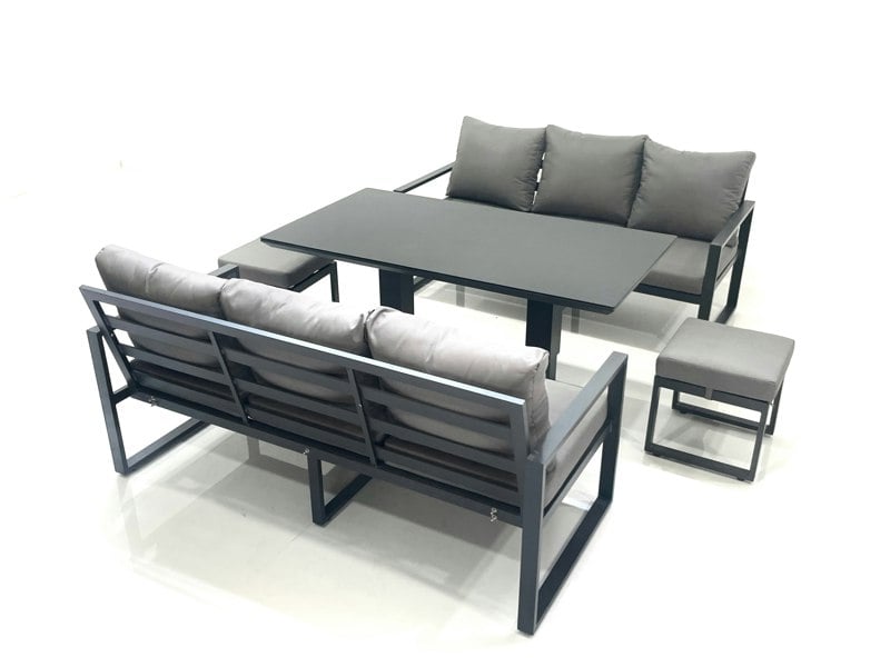 Designed for relaxed outdoor living, this 8-seater garden furniture set creates a flexible space for everyday lounging and open-air dining. With two 3-seater sofas, two fully assembled stools and an adjustable dining table, it suits patios and gardens where you want seating that adapts from coffee moments to mealtimes.