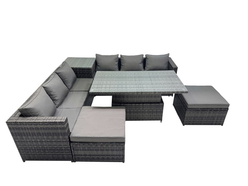 Designed for flexible outdoor living, this modern deluxe rattan sofa set suits a range of occasions, from relaxed coffee moments to casual dining. With a height-adjustable rising table and supportive seating, it creates a comfortable setting for a garden, patio or conservatory.