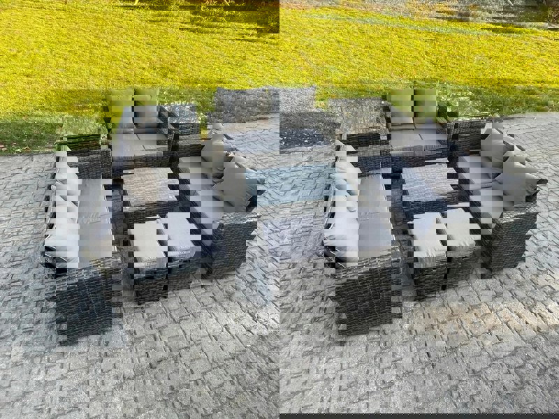 Designed for relaxed outdoor living, this 8-piece rattan sofa set offers generous seating for up to 8 people, making it ideal for entertaining on the patio, in the garden or by the pool. A tempered glass coffee table provides a practical surface for food, drinks and everyday essentials, helping you keep everything close to hand.