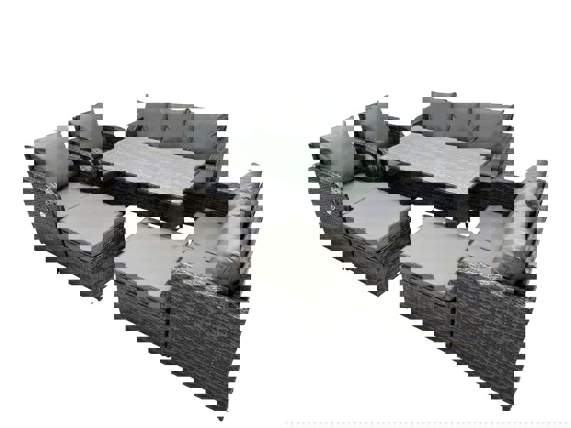 Bring a refined, coordinated look to your patio or balcony with this outdoor rattan sofa dining set. Designed for both indoor and outdoor use, it pairs PE rattan with a galvanised steel construction for a sturdy, long-lasting finish.