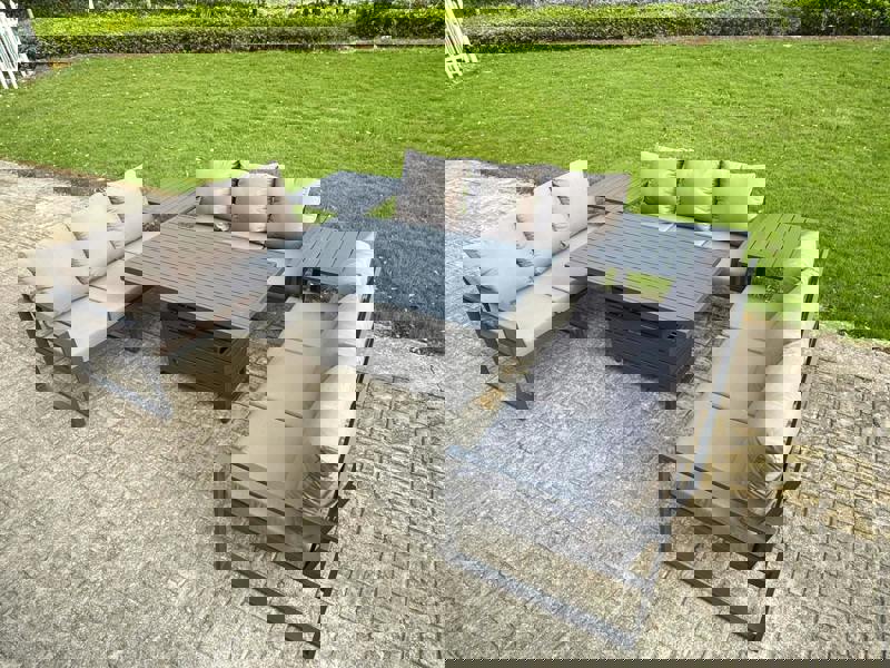 The Fimous U-shaped garden furniture set is designed to bring flexible outdoor living to your patio or garden. With an adjustable rising dining table, it transitions easily between relaxed coffee moments and comfortable dining, making it ideal for everyday use and entertaining.