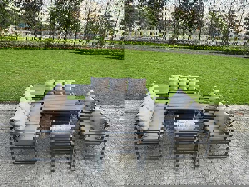Create a refined outdoor setting with the Fimous 7 Piece Garden Furniture Set, a 9-seater arrangement designed for relaxed lounging and outdoor dining. With a dark grey finish and coordinating cushions, it brings a cohesive look to gardens and patios while offering flexible seating for everyday use and entertaining.