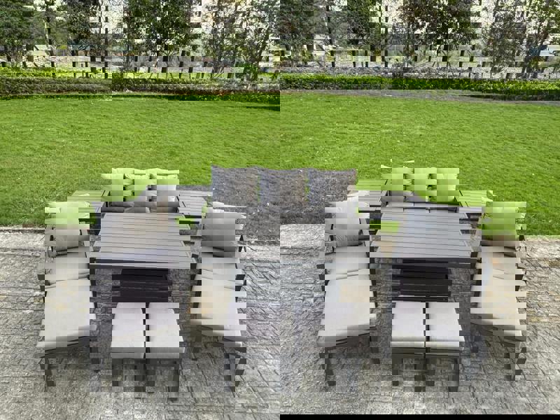 Bring flexible outdoor hosting to your patio or garden with this deluxe aluminium adjustable rising sofa dining set. Designed to transition easily between relaxed coffee-table lounging and comfortable dining, it creates a versatile space for everyday use and entertaining.