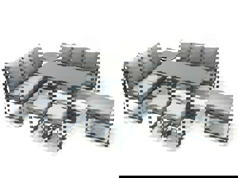 Designed for relaxed outdoor living, this deluxe aluminium garden sofa set makes an elegant addition to a patio or garden. Crafted from alloy aluminium with a powder-coated finish, it is made for sturdiness and structural durability, while the dark grey fabric cushions bring comfort for everyday lounging and entertaining.