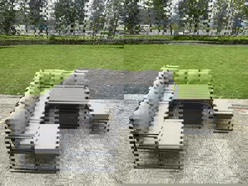 The Fimous 9 Seater Aluminium Sofa Set is designed to bring flexible comfort to outdoor dining and lounging. With an adjustable dining table and a modular mix of seating, it’s easy to switch from relaxed coffee moments to sit-down meals on the patio, in the garden, or on the balcony.