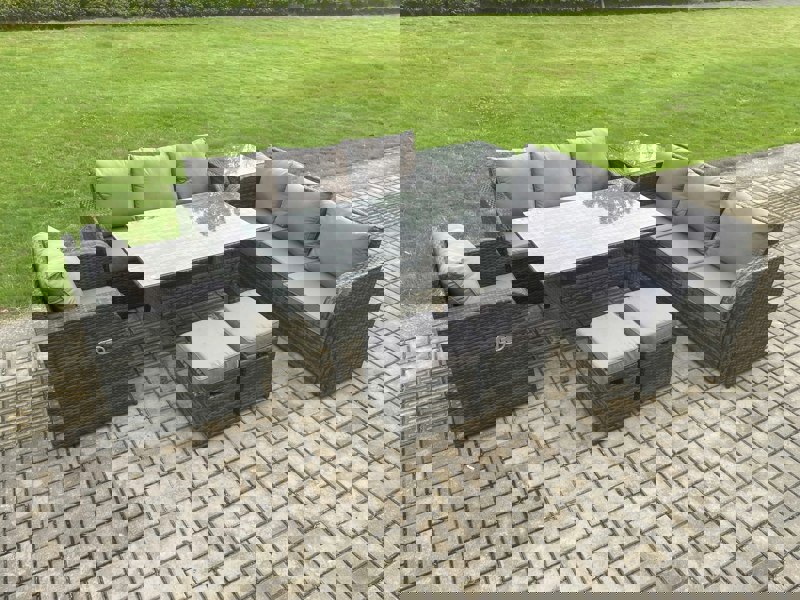 Designed for relaxed outdoor dining and lounging, this 9 seater garden set brings together a coordinated mix of seating, footstools and tables for patios and gardens. Finished in dark grey mixed rattan with dark grey fabric, it offers a practical layout for everyday use and entertaining.