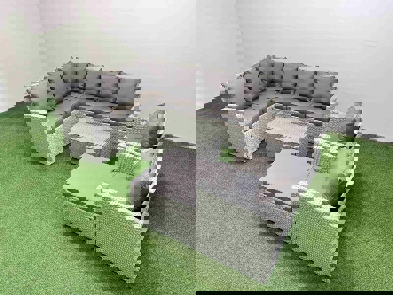 Designed for flexible outdoor living, this modular rattan furniture set can be rearranged to suit the moment, from relaxed lounging to hosting friends. With a coordinated oblong coffee table, generous footstool and a mix of sofas and chairs, it creates a practical seating area for patios, terraces and gardens.