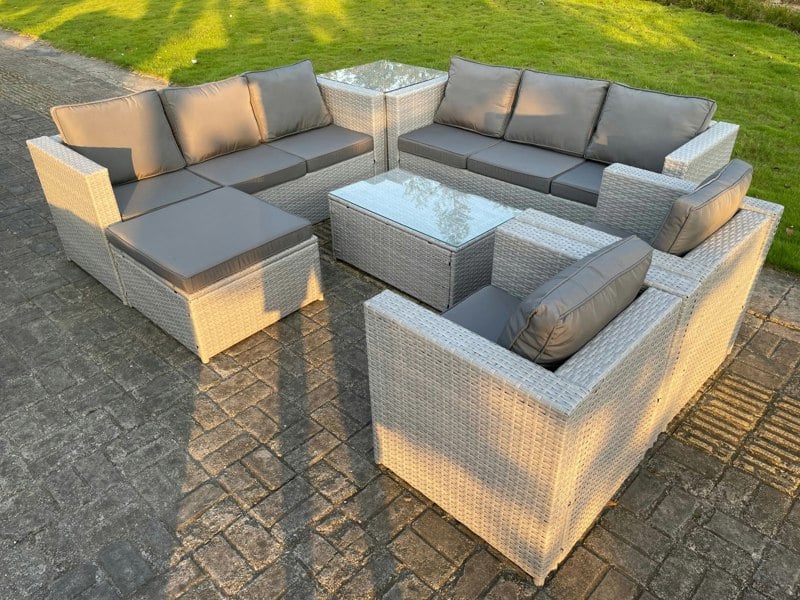 Create an inviting outdoor setting for relaxed entertaining with this 9 seater rattan furniture set. Designed for get-togethers with friends, it brings together generous seating with practical tables, making it easy to serve drinks, share snacks, or simply unwind in comfort.