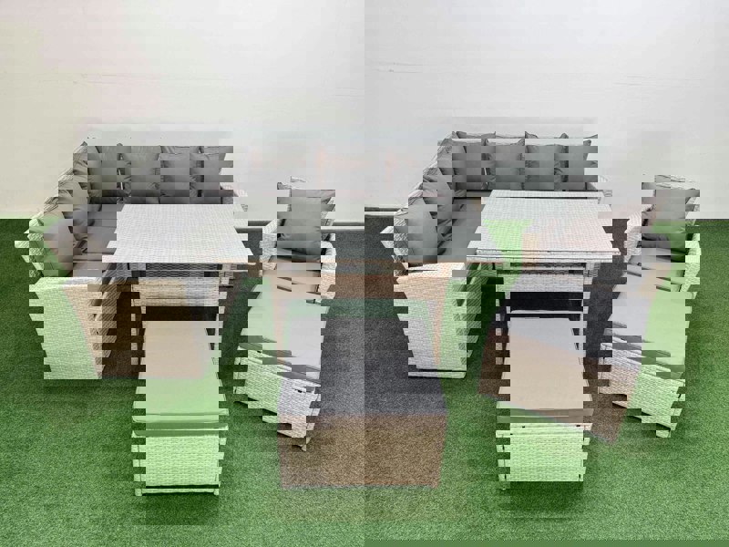Designed for relaxed outdoor dining and lounging, this deluxe high back rattan corner sofa set makes it easy to gather family and friends in the garden or on the patio. The set combines PE rattan with a galvanised steel construction for a sturdy, durable finish that is suitable for outdoor use all year round.