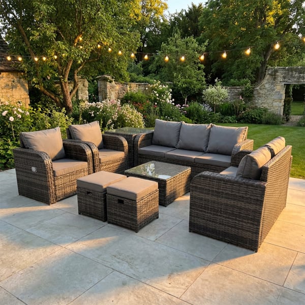 Crafted with high quality PE rattan and a durable galvanised steel construction, the set is made for everyday comfort and lasting sturdiness. Adjustable reclining chairs and supportive cushions complete the experience, while the tables provide practical surfaces for drinks and essentials.