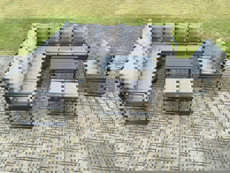 Create a refined outdoor seating area with this aluminium garden furniture sofa set, designed to seat up to 10 people. Ideal for relaxed entertaining, it includes an oblong coffee table for serving food and drinks across patios, gardens, backyards and poolside spaces, as well as indoor settings.