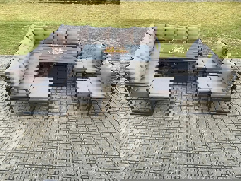 Create a refined outdoor setting with this aluminium gas fire pit sofa dining set, designed for relaxed dining and sociable evenings on the patio or in the garden. Finished in dark grey powder coating with matching dark grey fabric, it brings a coordinated look to your space while offering a comfortable place to gather.