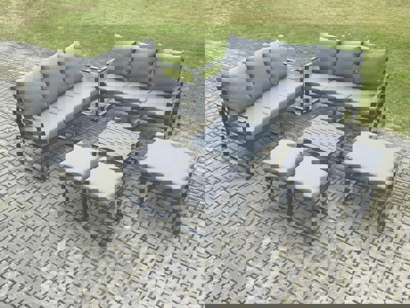 Create a refined outdoor lounge area with this aluminium garden furniture set, designed for relaxed seating on the patio or in the garden. Finished in dark grey powder coating with matching dark grey fabric, it offers a coordinated look for everyday outdoor living.