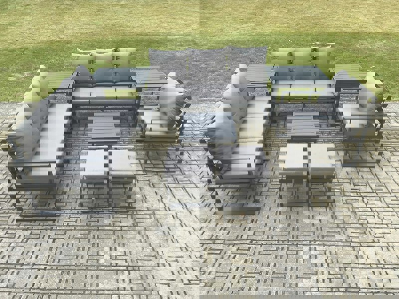Create a refined outdoor seating area with this aluminium garden furniture lounge set, designed to accommodate up to 9 people. With a square coffee table and two side coffee tables, it offers practical surfaces for food, drinks and everyday entertaining across patios, gardens, backyards and poolside spaces, as well as indoor settings.