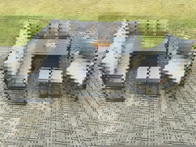 Create an inviting space for outdoor dining and relaxed evenings with this aluminium garden furniture set, complete with a dining table featuring a gas fire pit. Designed to seat up to 11 people, it offers generous room for serving food and drinks, making it a practical choice for patios, gardens, backyards and poolside settings, as well as other indoor and outdoor spaces.