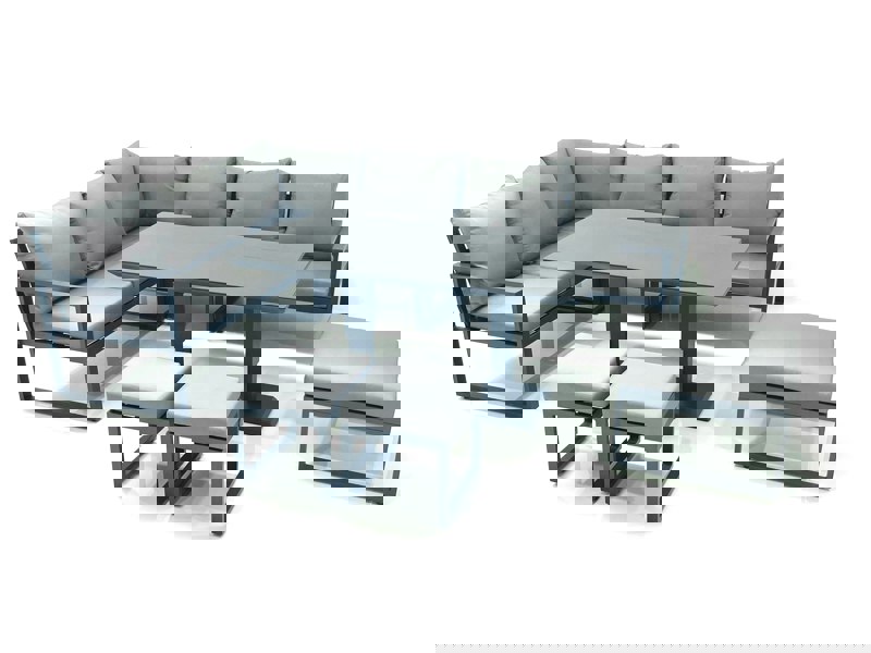 Designed for relaxed outdoor living, this deluxe aluminium adjustable rising sofa dining set brings flexible seating and dining to your patio or garden. The set pairs a powder-coated alloy aluminium frame with a height-adjustable dining table, making it easy to switch between low lounging and a more upright dining position.