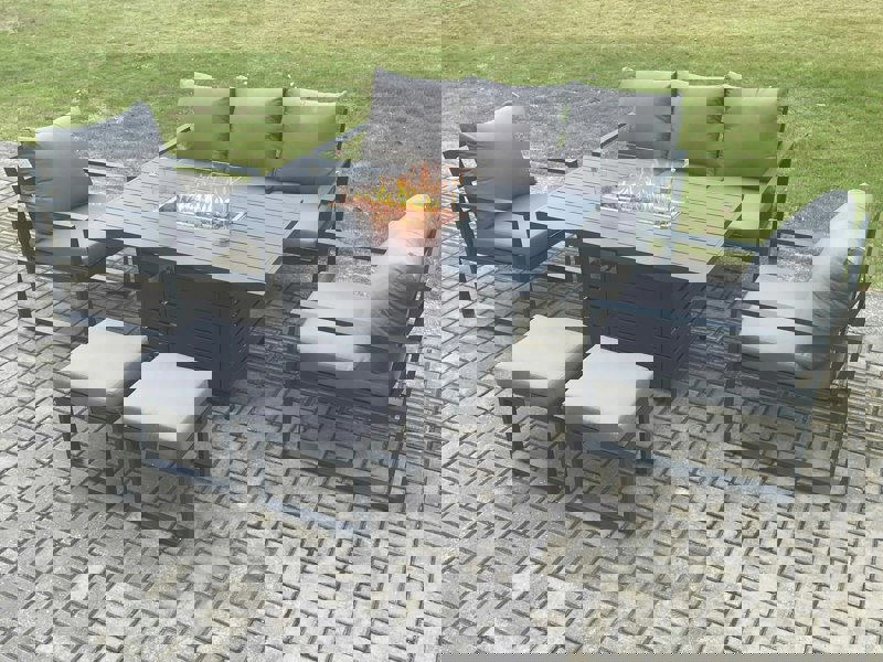 Create an inviting space for outdoor dining and relaxed evenings with this aluminium garden furniture set, complete with a dining table featuring a gas fire pit. Designed to seat up to 7 people, it offers generous room for sharing food and drinks across your patio, garden, backyard or poolside, and can also be used in indoor or outdoor spaces.