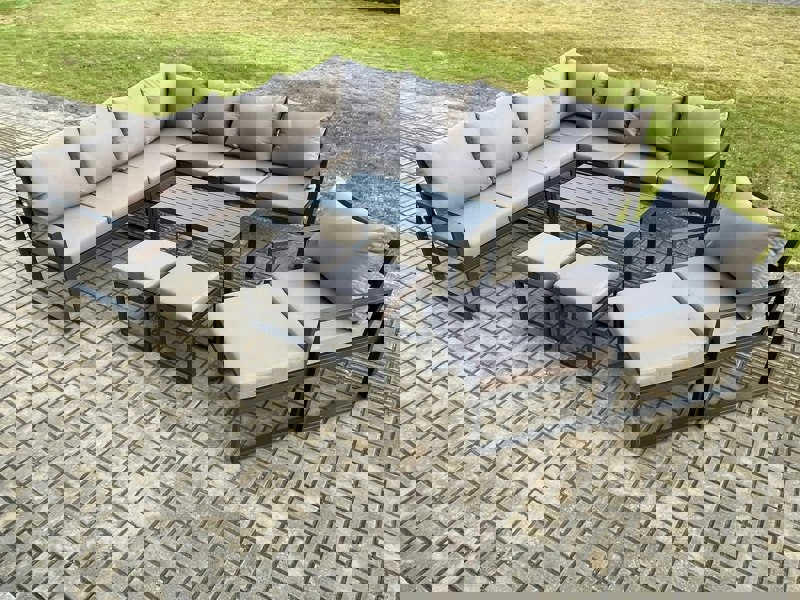 Designed for flexible outdoor living, this aluminium garden furniture sofa set offers generous seating for up to 11 people, with an oblong coffee table for food, drinks and everyday essentials. A versatile choice for patios, gardens, backyards and poolside settings, it also suits indoor spaces when you want a relaxed lounge arrangement.