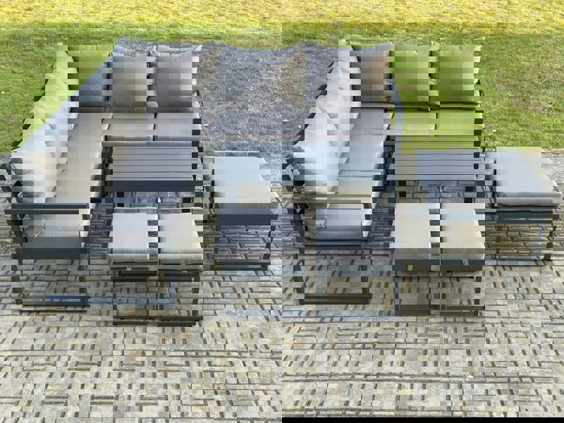 Create a refined outdoor lounge area with this 8 seater deluxe garden furniture set, designed to bring structure and comfort to patios, decks, backyards, porches and poolside spaces. Made with an alloy aluminium construction for sturdiness and long-lasting use, it is suitable for outdoor placement all year round.