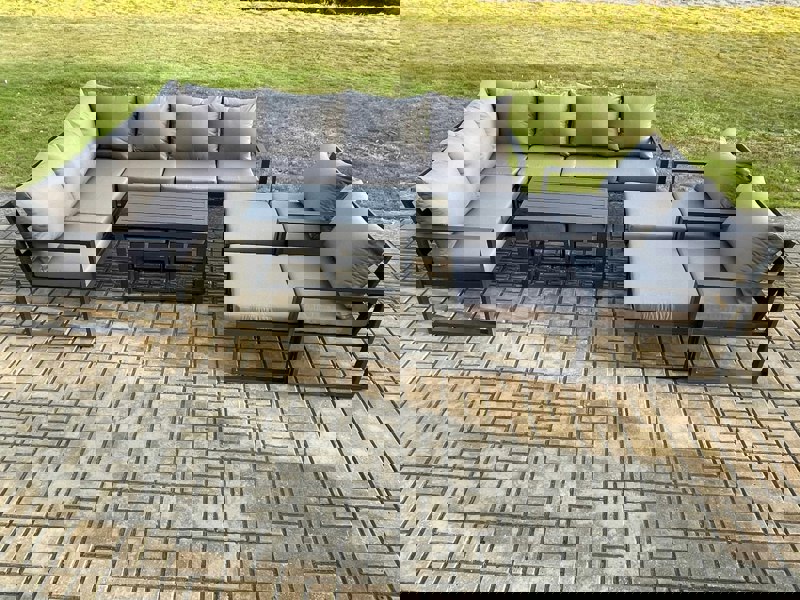 Built with a high quality aluminium frame construction for sturdiness and long-lasting use, the set features a dark grey powder-coated finish with dark grey fabric. Seat cushions are 9 cm thick, paired with soft pillow back cushions for added comfort.
