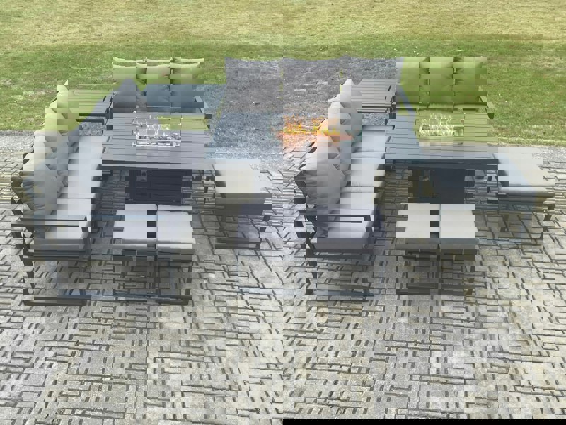 Create a refined outdoor setting with this aluminium gas fire pit sofa dining set, designed for relaxed dining and sociable evenings on the patio or in the garden. Finished in dark grey powder coating with matching dark grey fabric, it brings a cohesive look to contemporary outdoor spaces.