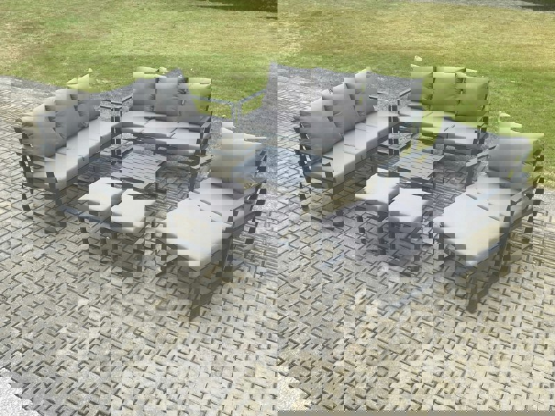 Create a refined outdoor seating area with this aluminium garden furniture sofa set, designed to accommodate up to 10 people. Ideal for patios, gardens, backyards and poolside spaces, it includes a square coffee table for serving food, drinks and everyday essentials, making it well suited to relaxed entertaining both outdoors and indoors.