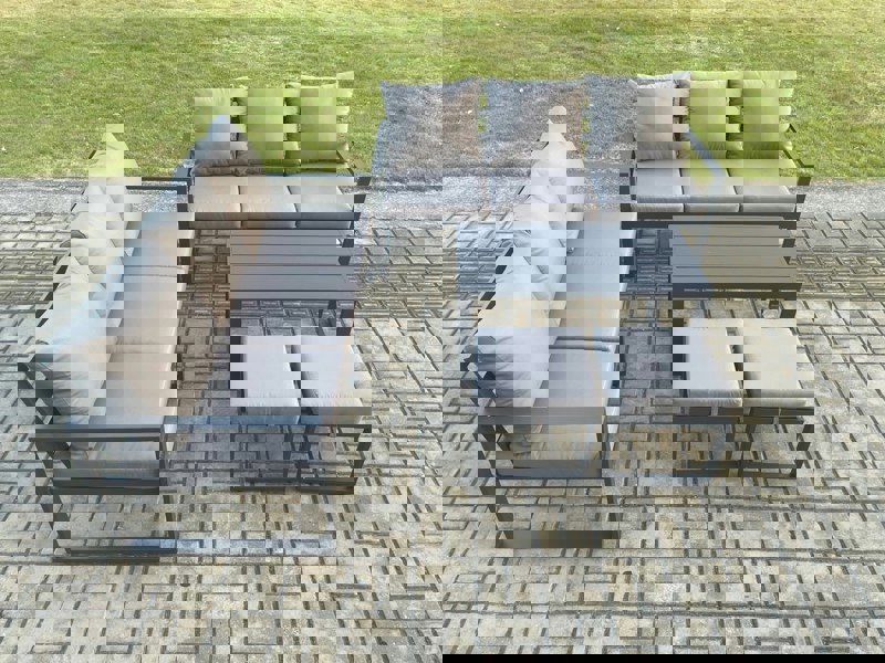 Built with an alloy aluminium frame, the set is powder coated to help prevent rust and finished in dark grey powder coating with dark grey fabric. Comfort is enhanced with a 9 cm thick seat cushion and soft pillow back cushions, while removable cushion covers support low-maintenance everyday living.