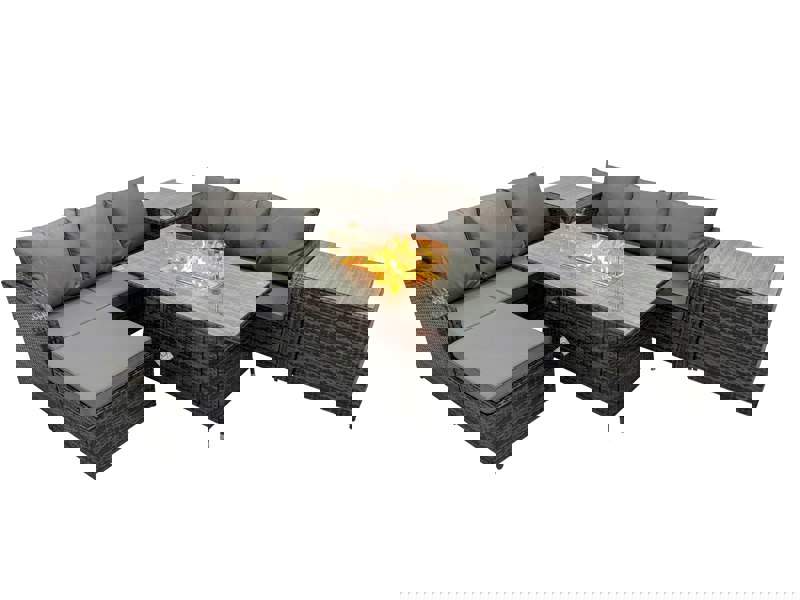 The Fimous Garden Outdoor Rattan Furniture Set brings together relaxed seating and a fire pit dining table for versatile use indoors or outdoors. Designed for patios and balconies, it blends country chic with modern minimalism to add a refined finishing touch to your space.