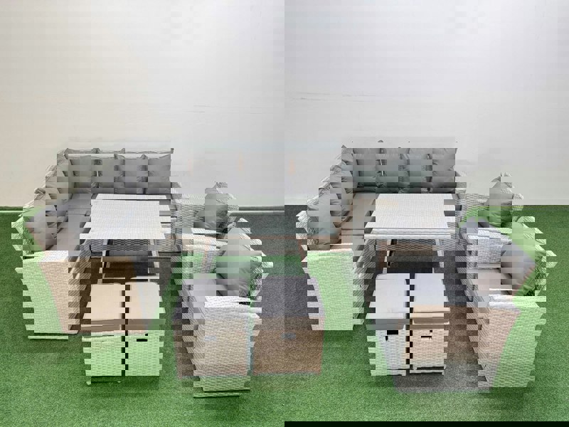 Create a refined seating and dining area with this patio corner sofa set, designed for both indoor and outdoor use. Featuring PE rattan and a galvanised steel construction, it offers a sturdy, long-lasting place to relax, entertain, or enjoy everyday meals on the patio or balcony.