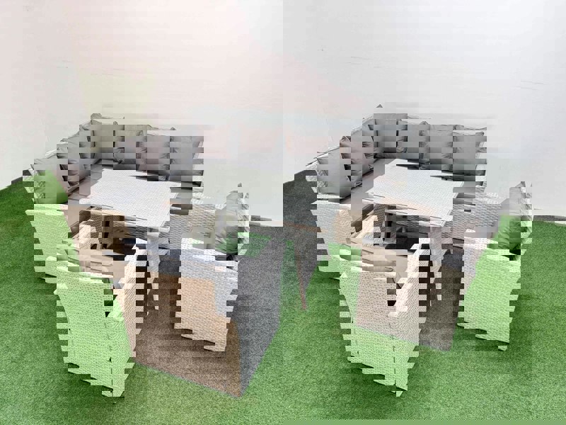 Designed for flexible living, this patio corner sofa set can be used indoors or outdoors, making it ideal for a conservatory, patio or balcony. With a blend of country chic and modern minimalism, it brings a clean, elegant look to your space while offering a comfortable setting for everyday lounging and dining.